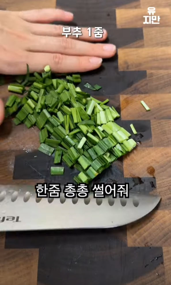 부추도 한 줌 총총 썰어주세요. 부추는 두부와 양파에 신선한 맛을 더해줍니다.