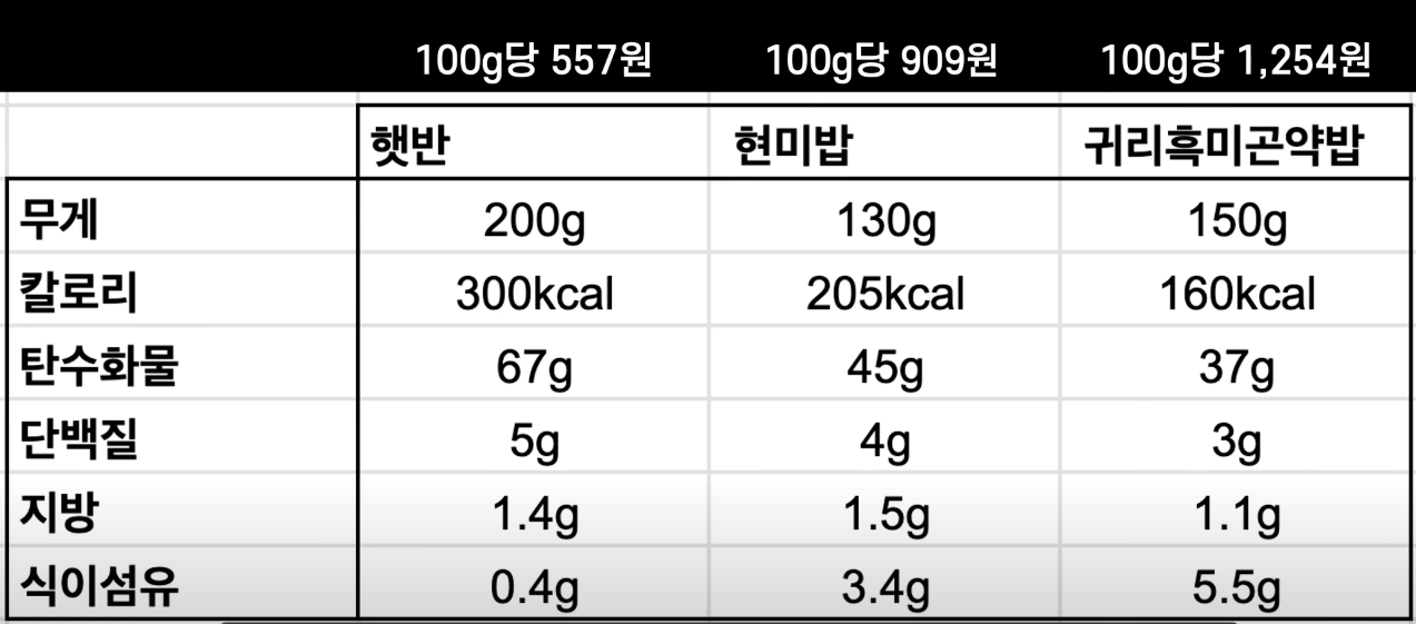 현미밥 S급, 방송에서 하도 떠돌아드는 현미밥입니다. 가격, 성분, 접근성 깔게 없는 S급이 맞습니다. 하지만 주의하셔야 할 점은 소화가 잘 안 될 수도 있다는 건데요. 이게 같은 쌀인데 현미는 백미보다 껍질을 덜 깎아내란 말이죠. 결국이 껍질을 함께 먹게 식이섬유를 섭취할 수 있고, 식이섬유는 물리적으로 소화가 안 되기 때문에 흡수가 느린 식사를 하게 되면서 건강에 좋다고 하는 겁니다.