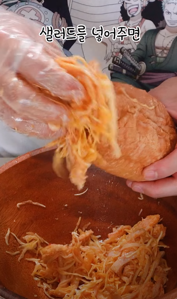양배추닭가슴 살은 내용 속 양념치킨 맛 닭가슴살을 사용했습니다.