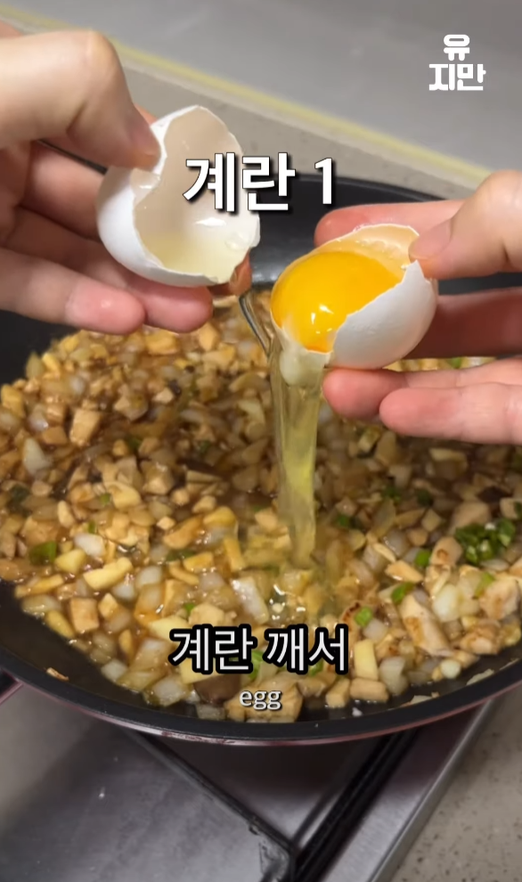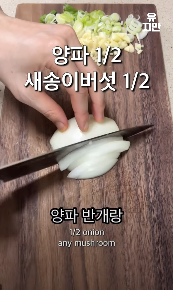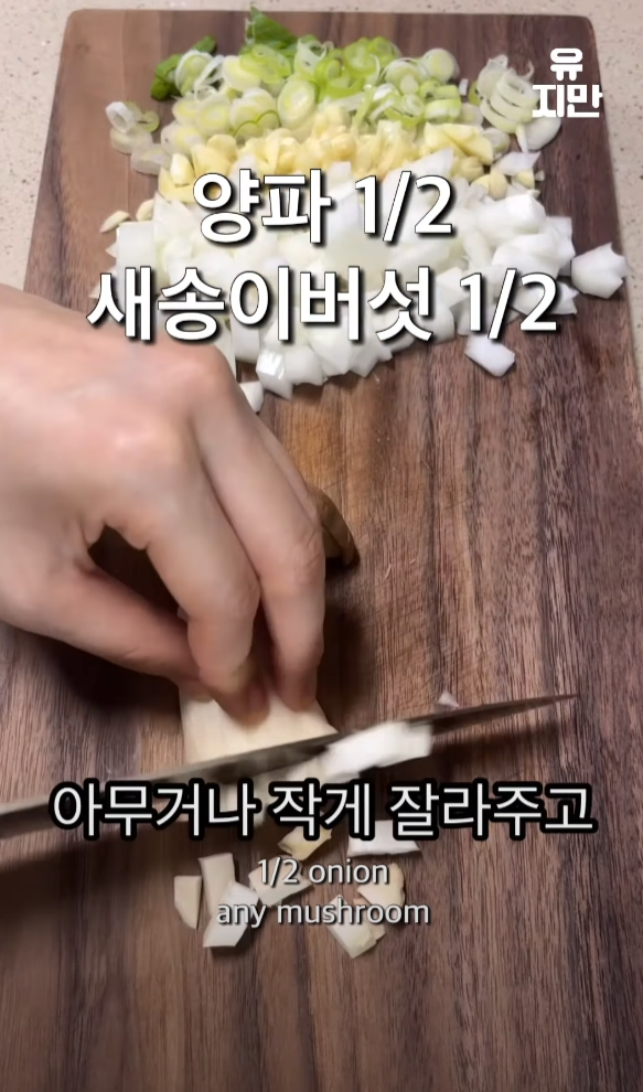 마늘, 대파, 양파, 새송이버섯 또는 아무 버섯, 계란