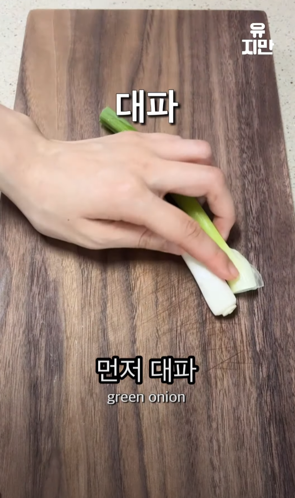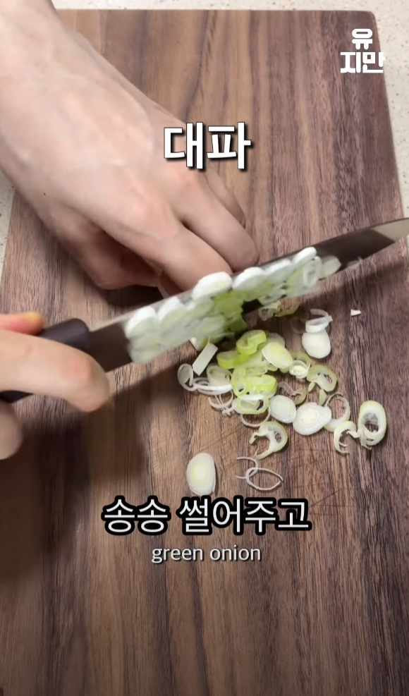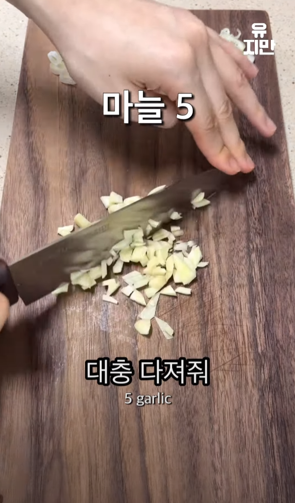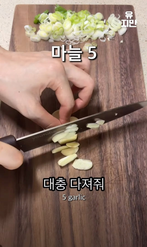대파를 송송 썰고, 마늘 다섯 개를 대충 다져줍니다.