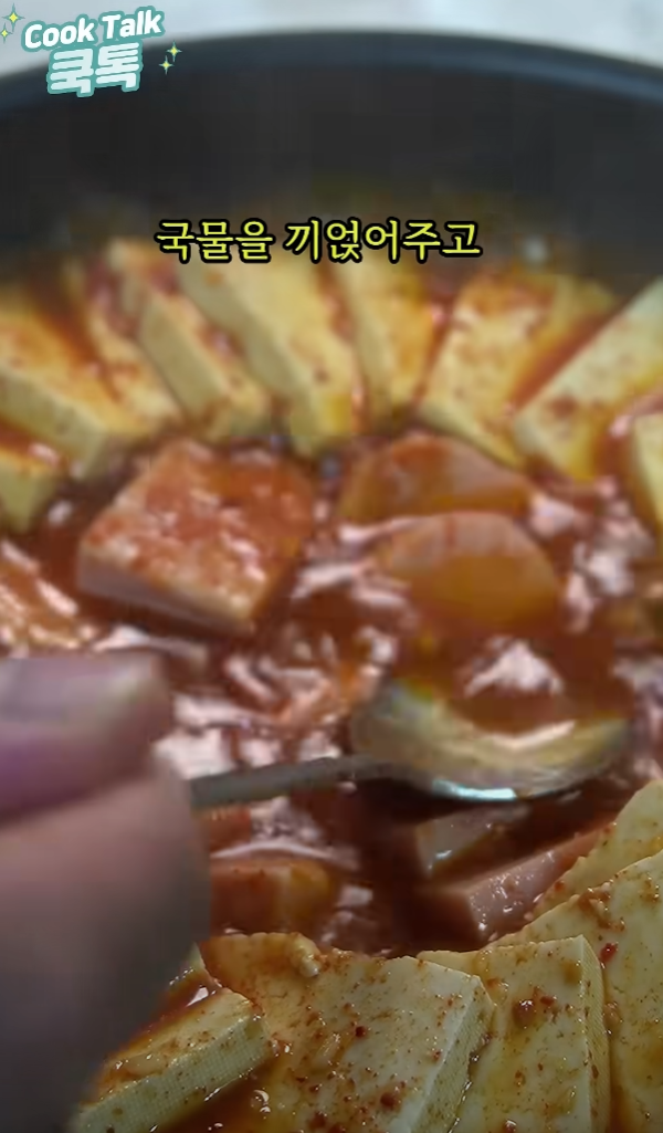 6. 센 불에서 시작해 물이 끓으면 중불로 낮추고, 두부에 간이 배도록 국물을 끼얹어 준다.