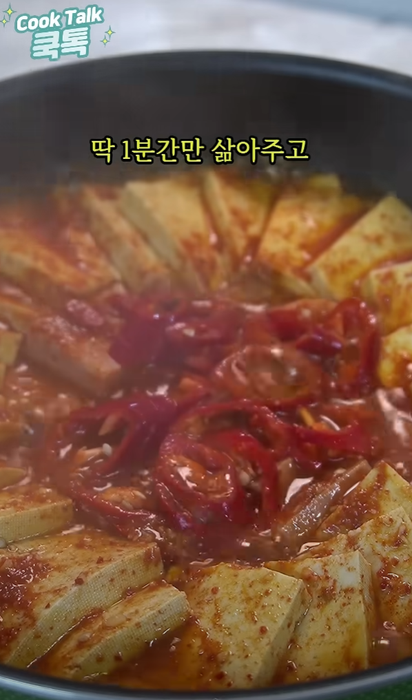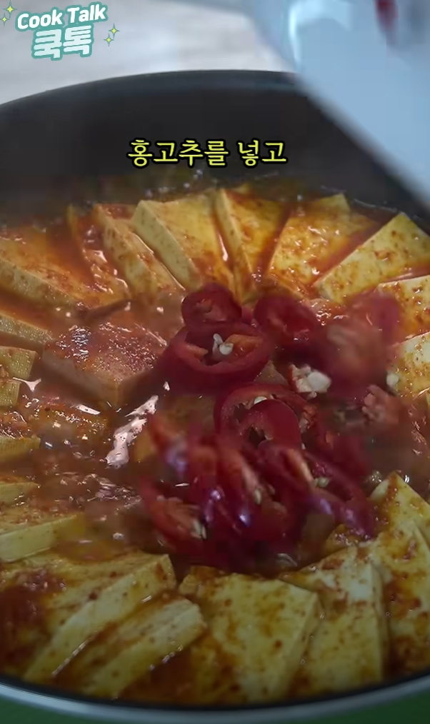 7. 그리고 홍고추를 넣고 1분간 더 끓인 후 불을 끈다.