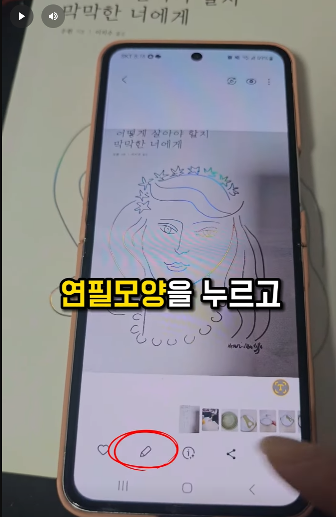 사진을 찍고 갤러리에 들어가 연필 모양을 누르고,