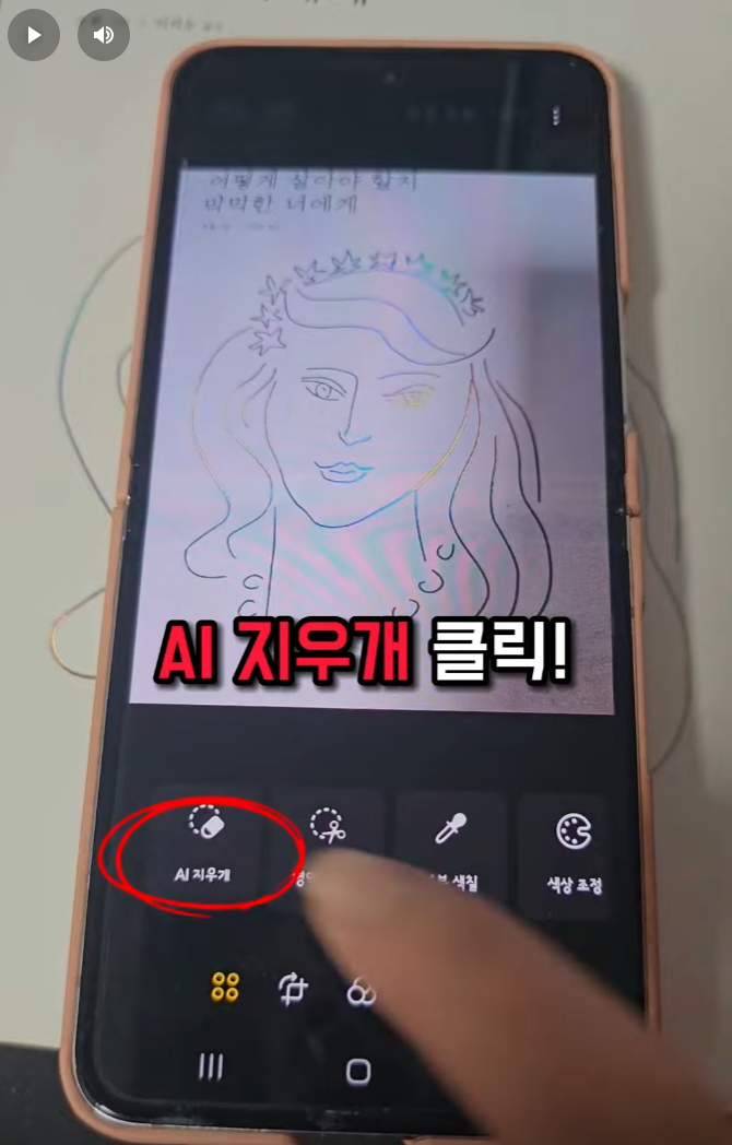 하단 맨 왼쪽에 있는 동그라미를 누른 후 AI 지우개를 클릭합니다.