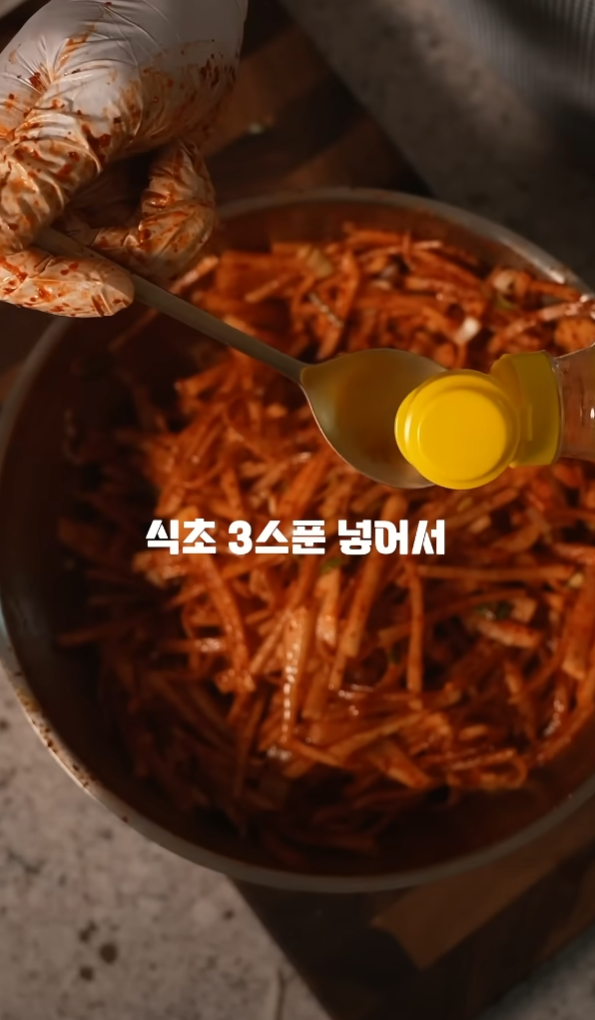 마지막으로 다진 대파와 식초 3스푼을 넣어 잘 버무린다.