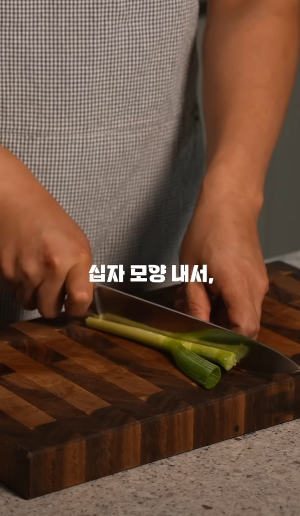 대파 반쪽도 십자모양내서 잘게 다져줄게요.