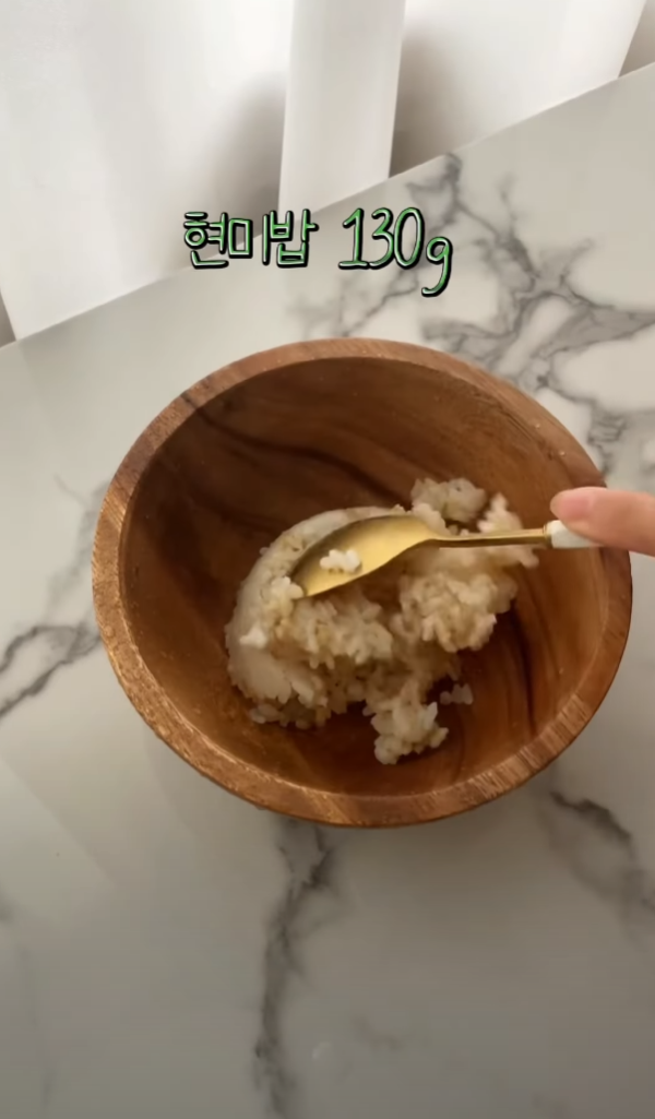 현미밥 130g과 썰어둔 오이 반 개를 그릇에 넣는다.