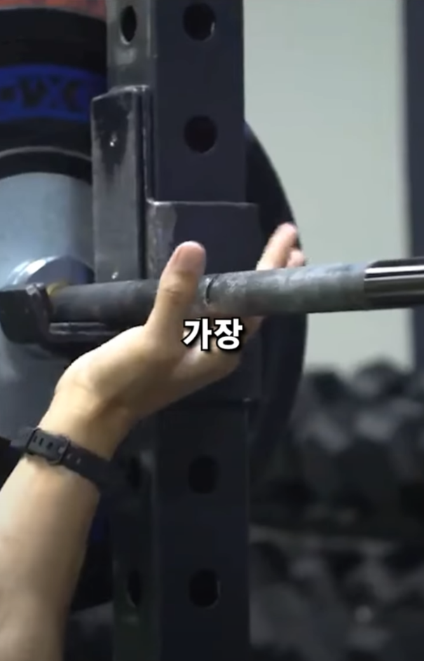 팔꿈치를 옆구리 쪽으로 가져온 위치에서 팔을 들어 바벨을 잡았을 때,