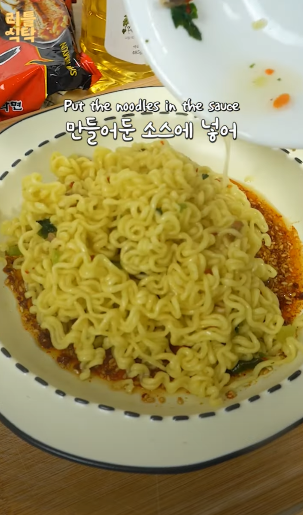 5. 만들어둔 소스에 면을 넣어 잘 섞는다.