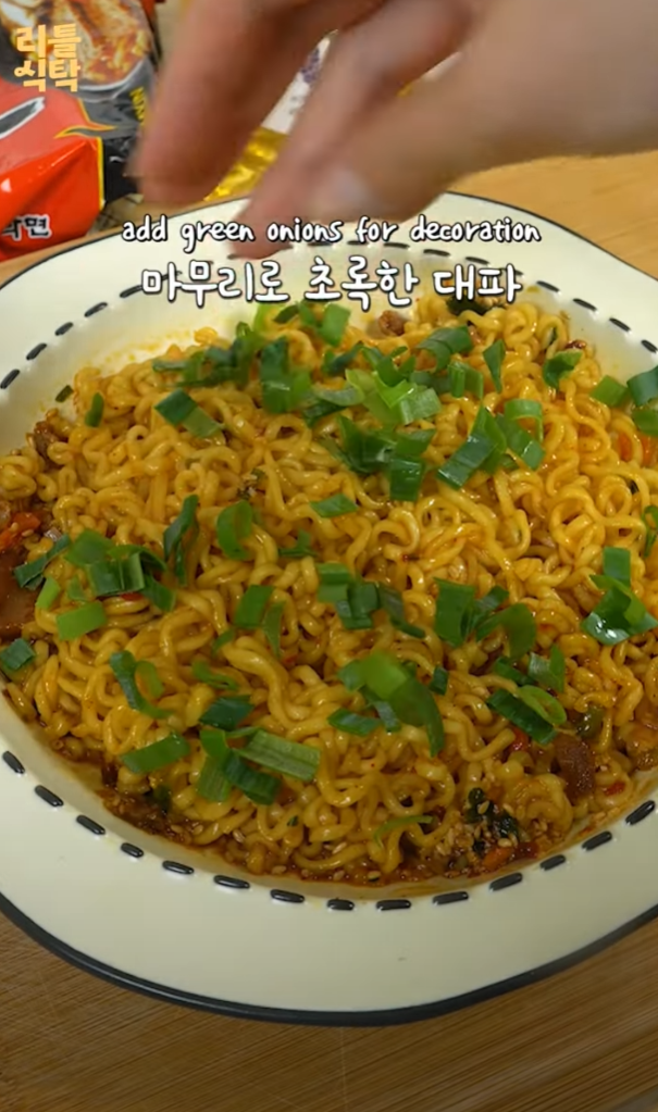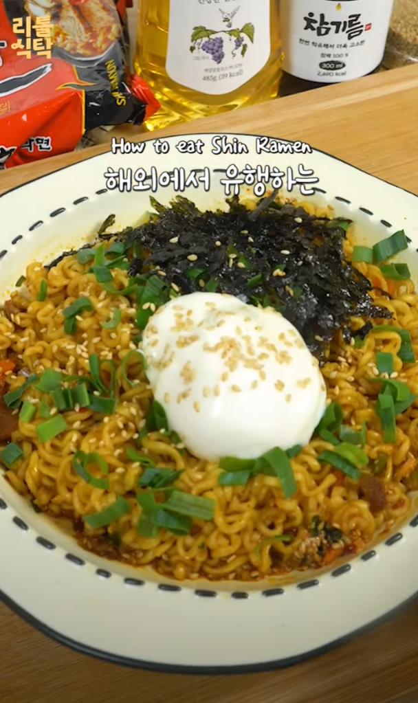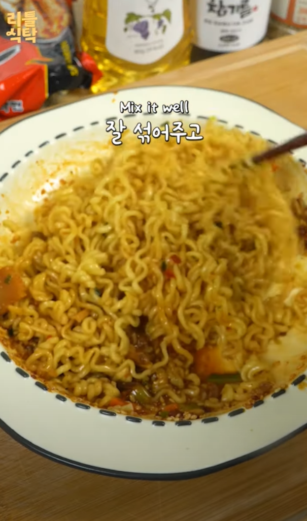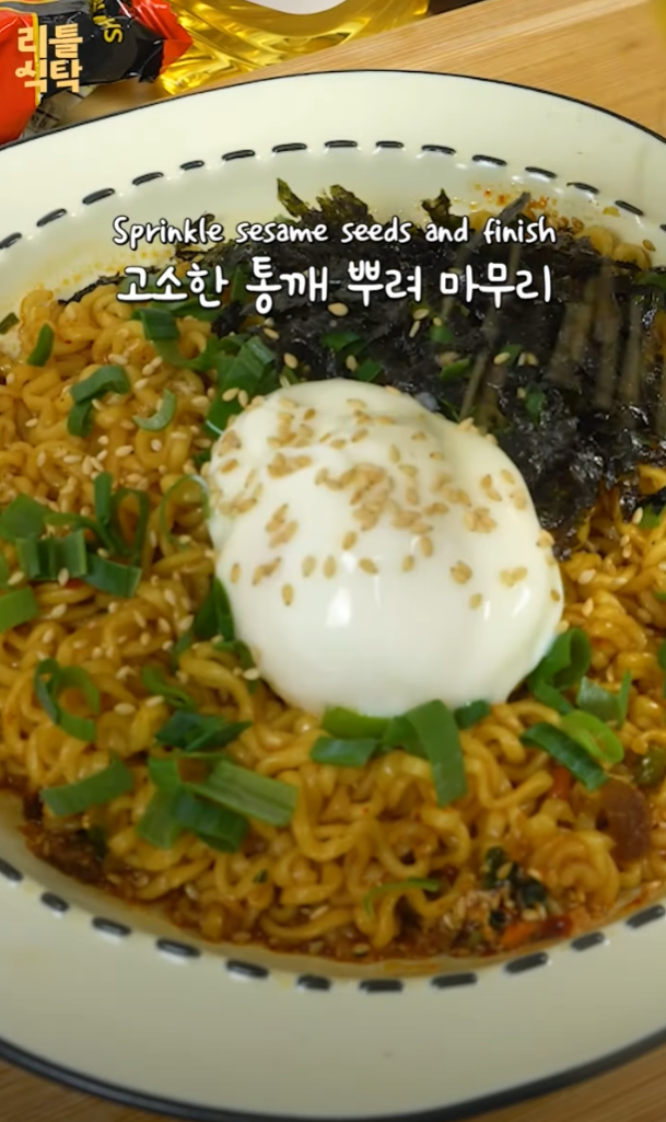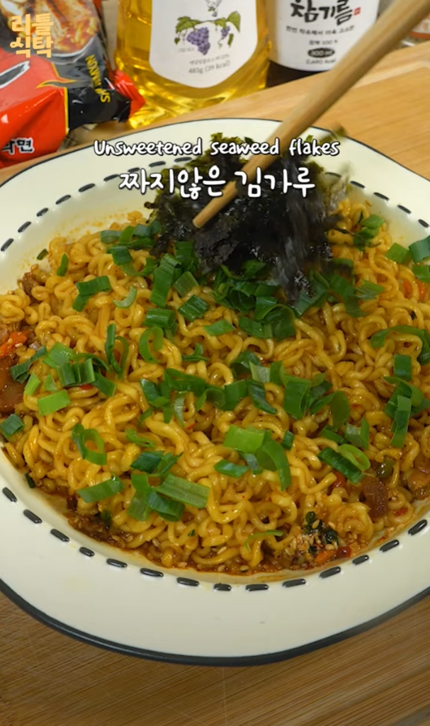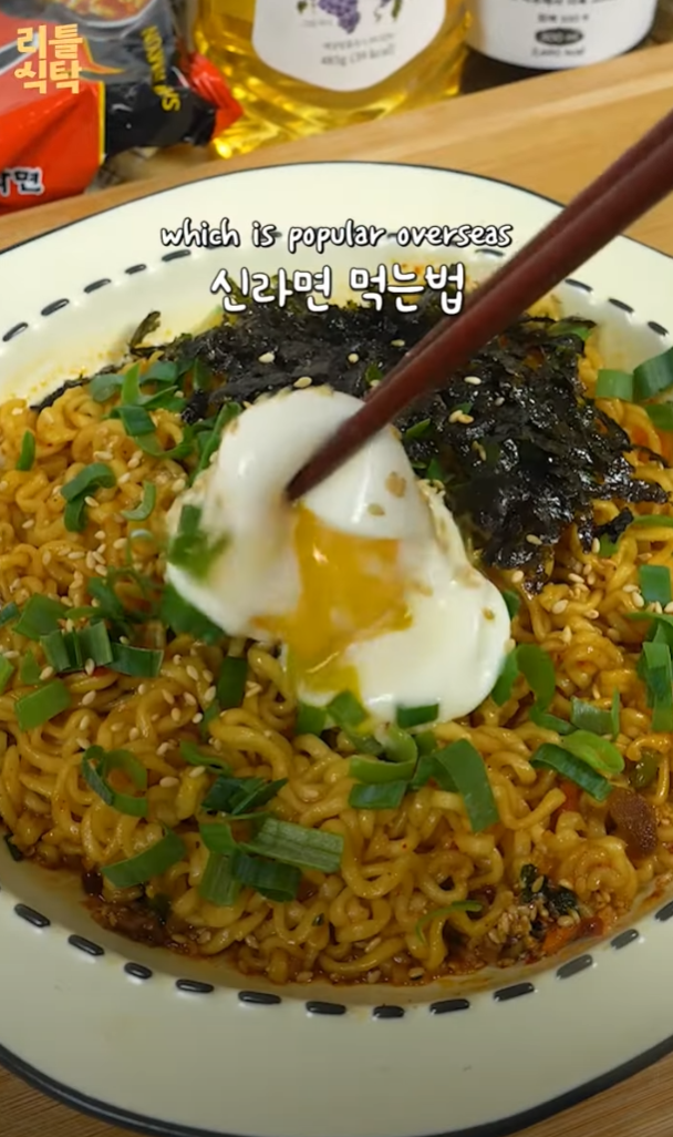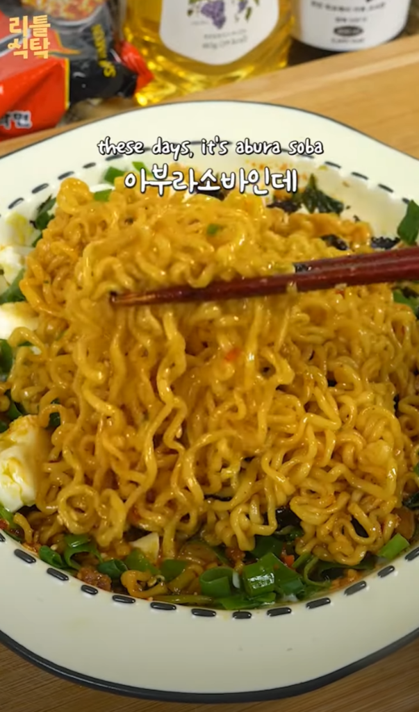 신라면으로 만드는 일본식 아브라 소바는 특별한 재료와 순서로 완성됩니다.