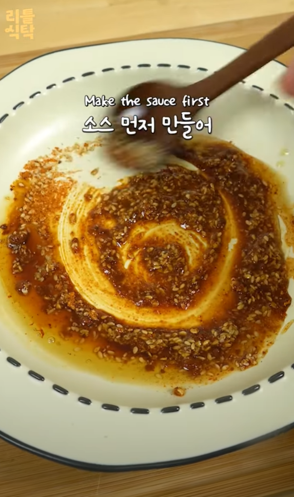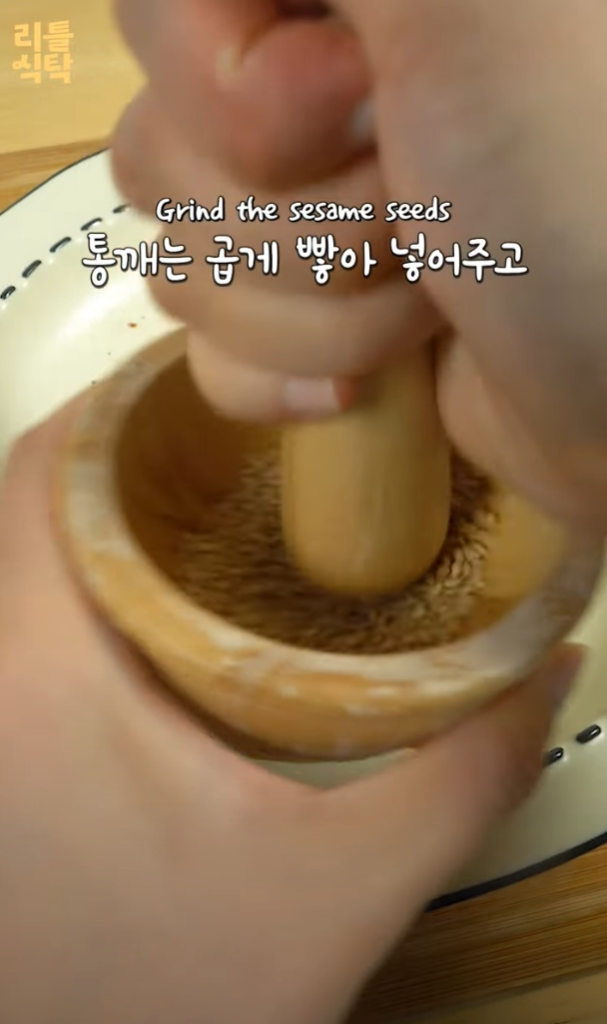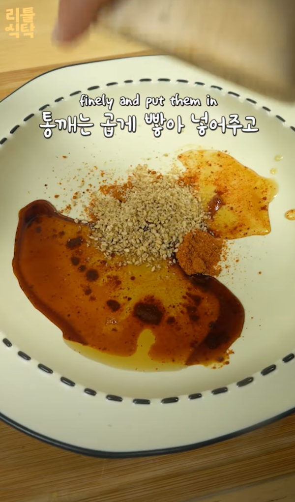 3. 참기름과 통깨를 곱게 다져 넣어 소스를 먼저 만든다.