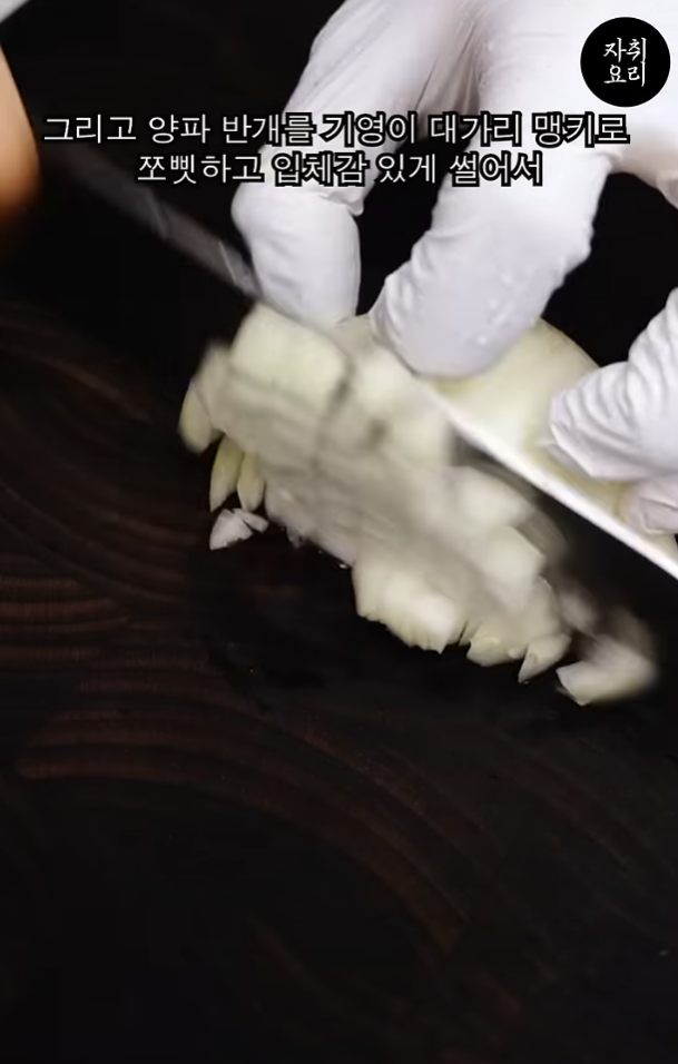 양파 반 개를 잘게 썰어서 참치와 같은 비율로 추가한다.