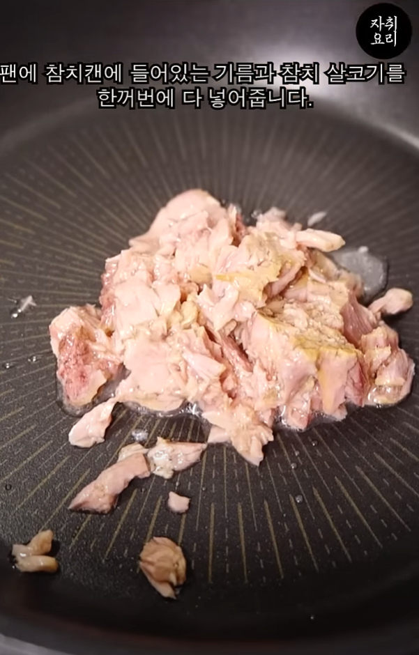 팬에 참치캔 하나와 기름을 같이 넣는다.