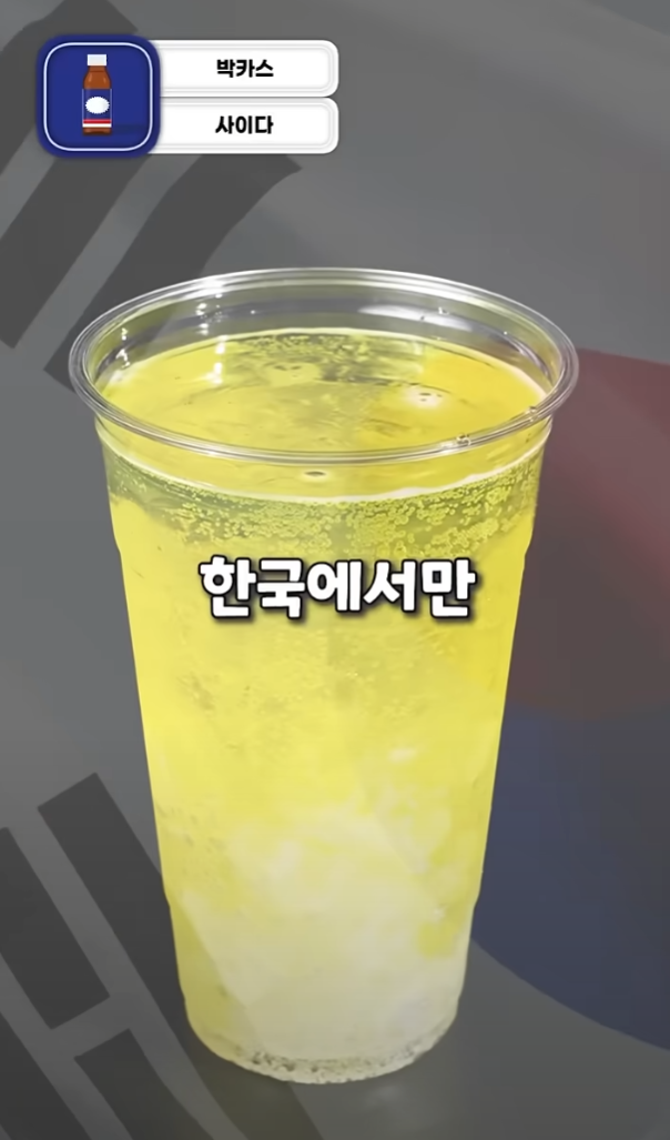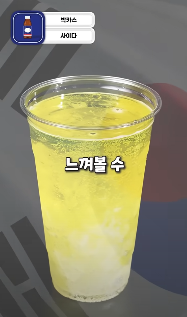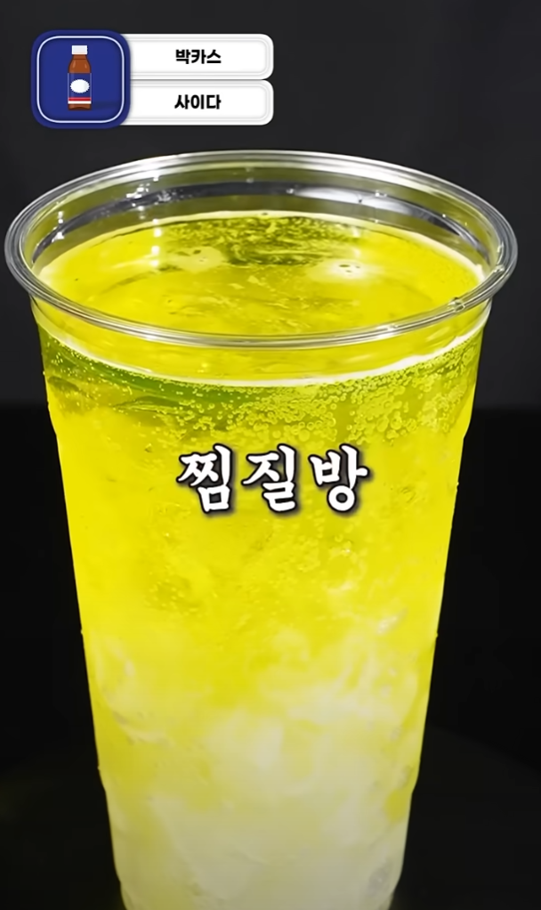 박카스와 사이다 조합은 한국 찜질방 인기 음료로 청량감이 뛰어납니다.